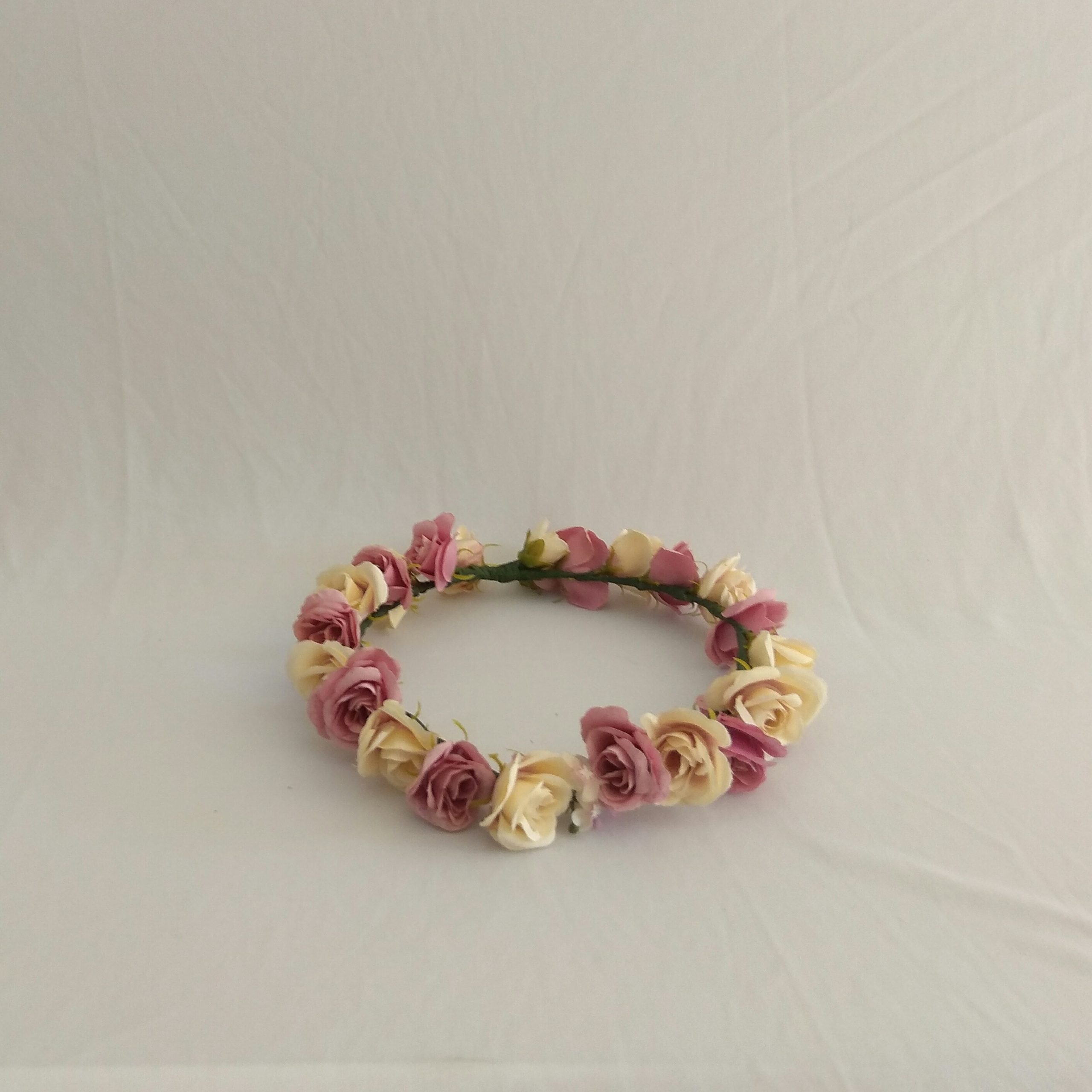 Coroa de flores artificiais rosa seco e champanhe. – Dimensão: –
